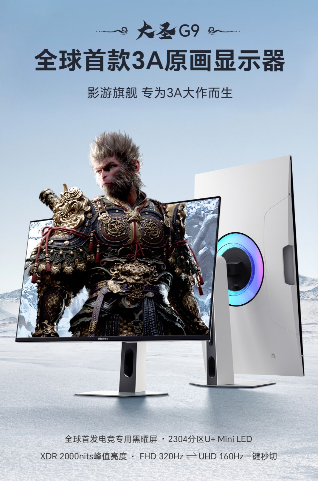 4月16日,全球显示技术领军企业海信集团正式宣布,旗下首款搭载日韩免费高清玻璃基MiniLED技术的高端旗舰显示器大圣G9于当日20点全网启动预售。预售价3999元,国补到手价3199元。凭借多项行业领先的技术,现象级爆款——3A原画显示器海信大圣G9首发即登顶行业TOP1,这不仅标志着海信在高端显示器领域的再次突破,更预示着MiniLED行业正式迈入“玻璃基精准光源时代”。