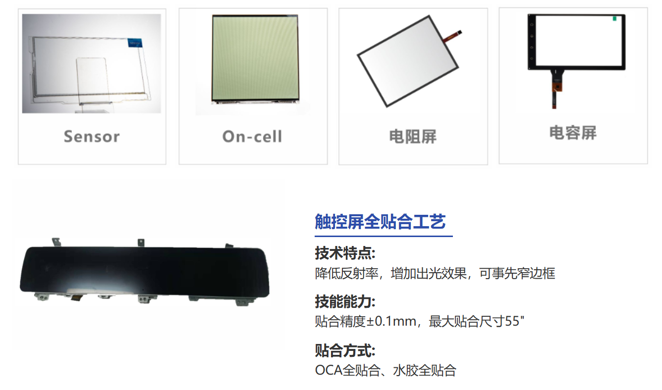 降低反射率,增加出光效果,可事设计窄边框。采用OCA全贴合、水胶全贴合,贴合精度±0.1mm,最大贴合尺寸55"